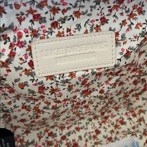 Like Dreams | Poppy vegan Bow Tie Straw woven basket purse, Crossbody shoulder bag Purse adjustable strap, like new, never used condition, still has plastic protector over gold detail in bow. Magnetic closure, floral lining. Cream color bag with gold details and hardware, coquette, feminine style