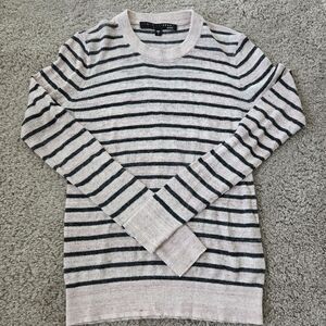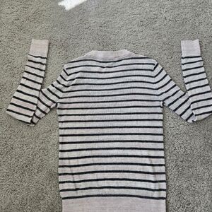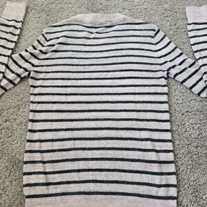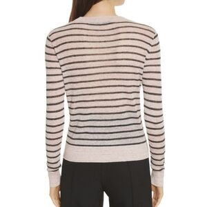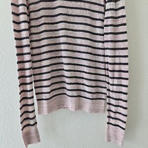 Veronica Beard Dean Pale Pink and Charcoal Stripe Linen Blend Sweater Size Small