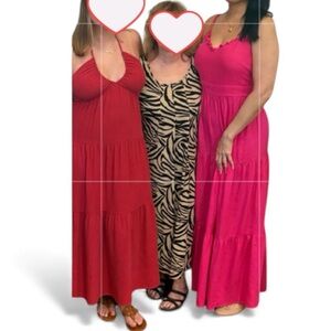 Bright pink maxi dress with delicate straps. Perfect for adding color to your wardrobe.