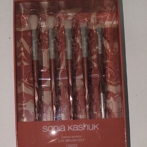 Elegant eye brush set by Sonia Kashuk. Includes five brushes in red and white design.