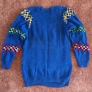 Vintage 90s Knit Works Colorful Abstract Checkered Woven Sweater
