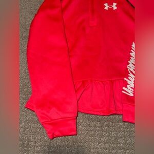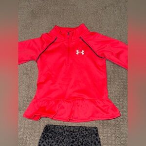 Vibrant pink peplum top with long sleeves. Paired with sleek black leopard print leggings. Ideal for a trendy outfit.