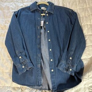 Stylish blue denim button-down shirt. Ideal for everyday wear.