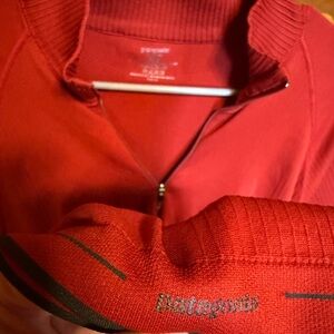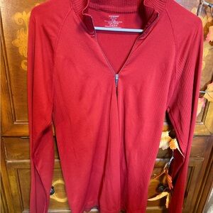 Stylish red pullover with half-zip. Perfect for casual wear.