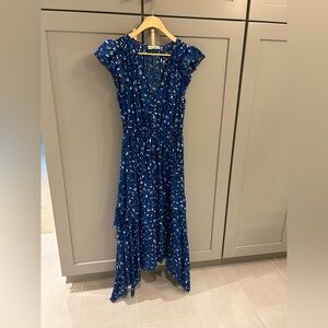 💙 Ulla Johnson Blue Floral Cotton-Silk Blend High Low Dress