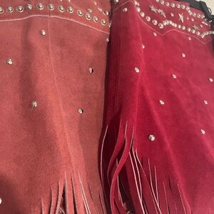 Understated Leather Pink “rebellious rose” Pink Chaps Belt. Last photo is of “rose” on the left vs “burgundy” on the right. Only “rose” is for sale.