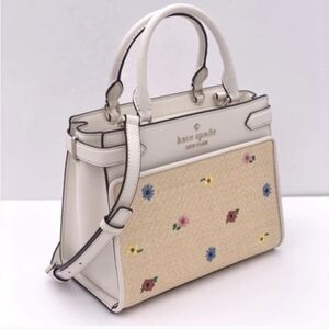 Women's Kate Spade Staci Garden Bouquet Straw Small Satchel Leather EUC $399
