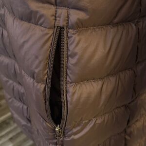 Cozy and lightweight design. Ideal for cold weather. Features a hood for extra warmth. In a light plum color.
