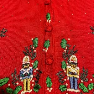 Vintage Red Christmas Cardigan with Nutcracker Design