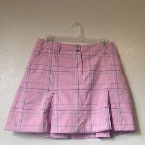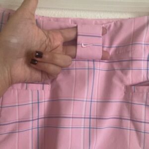 Nike pink plaid golf skort, skirt with shorts attached underneath. Has button and zip closure, belt loops and real pockets. Cute girly Y2K, 2000s style outfit. This style reminds me of mean girls Regina George and also Paris Hilton. Perfect for a vintage tennis or golf outfit.