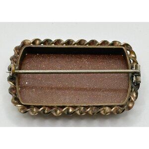Antique Victorian Rectangular Goldstone Brooch Pin