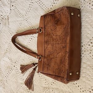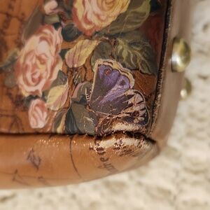 Beautiful English Garden Floral Map Leather Tote Bag