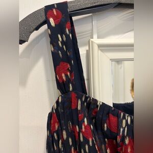NWT Saloni Chandra ruffled ruched metallic fil coupé silk-blend maxi dress in a rose petal pattern.