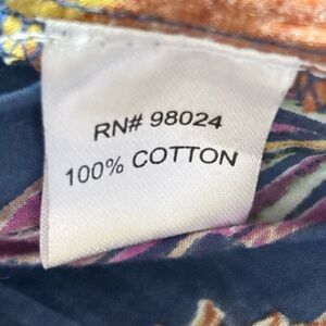 Stylish dress with vibrant floral pattern. Features blue and yellow hues.