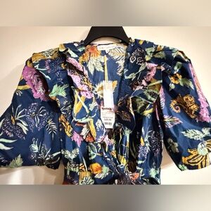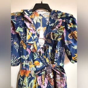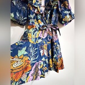 House of Harlow 1960 Blue and Orange Ruffled Floral Dress.