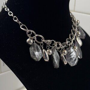 Edgy Gray Tone Metallic Acrylic Choker Necklace