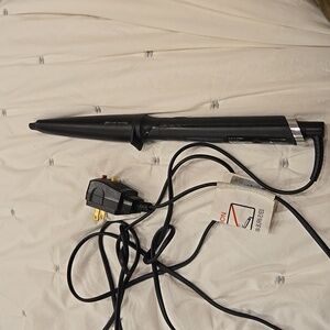 Elegant black curling wand for stylish curls. Ergonomic design.