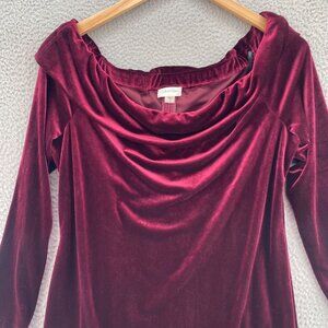 Calvin Klein Dress Womens 16 Burgundy Velveteen Shift Off Shoulder Long Sleeve Knee