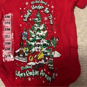 Adorable red one piece featuring a festive design. Perfect for keeping your little one cozy and stylish. Size 3 months new with tags.