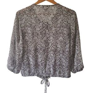 Cache Women's Snakeskin Print Sheer 3/4 Sleeve Blouse Gray Size 4