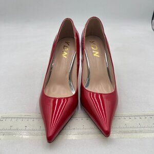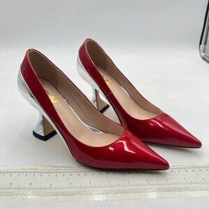 YDN Red and Silver Pointed Toe Slip on Pumps Special High Heel Shoe for Lady