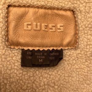 Vintage Guess Leather Jacket, Excellent used condition, Two way zipper on front, Two front pockets, Very Warm! 100% leather outer, 100% acrylic lining. There are a few small spots on the jacket. See photos.