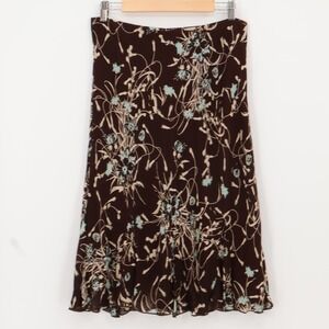 Features: Bronze Black Tan Abstract Animal Print Pattern – Sequin Accents – Collared – Long Sleeve – Button Front – Size M – Made in USA