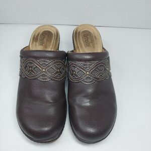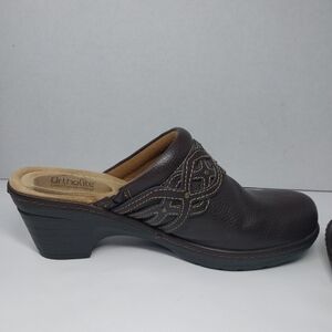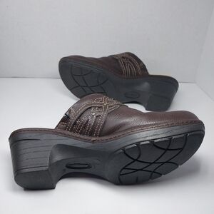 Croft & Barrow Ortholite Damebrown Sz 7 M Faux Leather Brown Slip on Clog Shoes