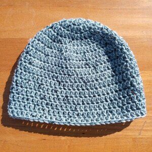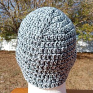 Men's Head Hugger Beanie Hat Handmade Tin Roof Gray Crochet Hiking Outdoors L
