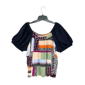 Anthropologie Maeve Green Blue Geometric Fit and Flare Cutout Mini Dress Size 12