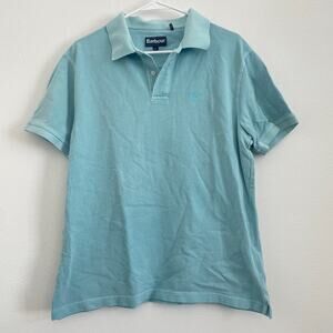 Barbour Polo Shirt Mens L Light Blue Short Sleeve Embroidered Logo Casual Golf