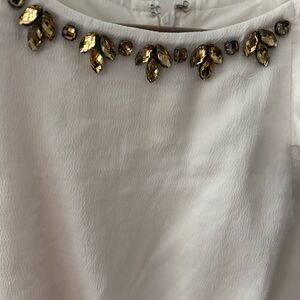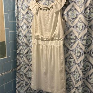 LOFT White Dress with Gem Accents, Lined and Sleeveless EUC Perfect Gemstones!!!