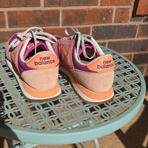 Vibrant New Balance sneakers with pink and orange hues. Stylish and comfortable for daily wear. Like new.