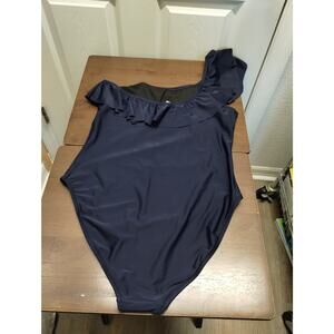 J. Crew Womens Size XL Navy Blue One-Shoulder Ruffle Neck One-Piece Bathing Suit