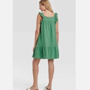 Universal Thread Green Flutter Sleeve Button Down Tiered Dress Women's Size 2X