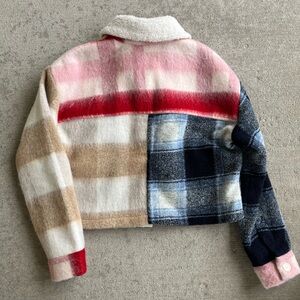 Central Park west New York Sherpa trim plaid jacket coat multi color