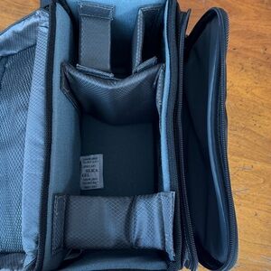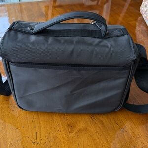 The Nikon CF-EUO5 is a system bag designed for Nikon digital SLR cameras. It is compatible with various Nikon SLR models up to and including the D90. The bag is constructed from rugged, waterproof nylon and features padded inner compartments to protect camera equipment. Never used. 12” wide, 8” high, 7” deep. Many pockets and compartments with customizable dividers.