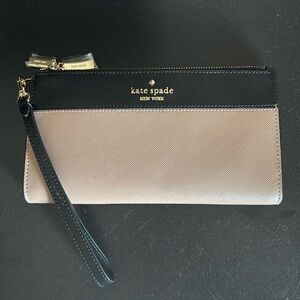 Elegant double zip wristlet with a sleek black top and rich brown body. Ideal for stylish outings.