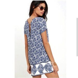 Lulus's Blue Paisley Shift Tunic Dress Small