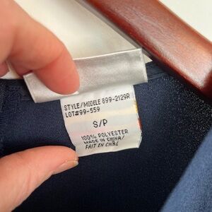This elegant navy blue sleeveless dress is perfect for any occasion. Its sleek design offers a timeless look that is both sophisticated and versatile. Size small beautiful condition