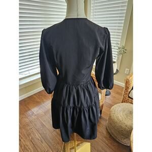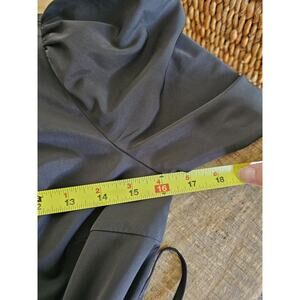 Very comfortable and flattering black midi dress. This is in excellent condition and comes from a clean and smoke free home. Please see measurements and additional details in the photos.
