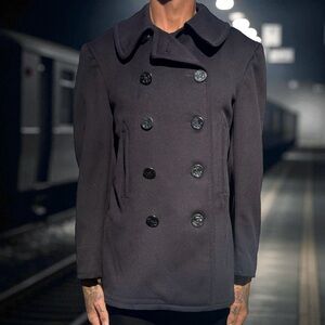 Vintage 40s WWII Naval 10 Button US Navy USN Wool Peacoat WW2 Coat Military Cord
