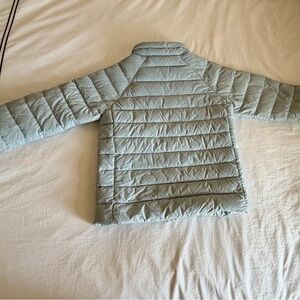 Cozy and versatile puffer. Ideal for outdoor activities. Lightweight and warm. In excellent condition. Color is a light blue/gray.