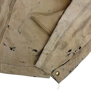 You're viewing a classic Vintage Carhartt Detroit Jacket! This jacket has a unique, worn-in look with some distressing and stains, adding to its vintage character. Please refer to the measurements provided to ensure a perfect fit.