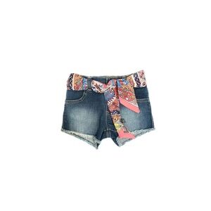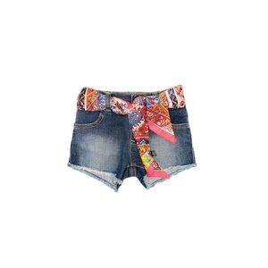Toddler Denim Shorts W/ Paisley Print Scarf Belt