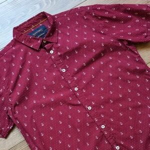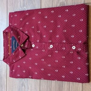 Gentlemen's Outfitters Anchor Polka Dot Short Sleeve Button Down Shirt Maroon L