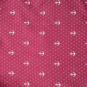 Gentlemen's Outfitters men's anchor and polka dot short sleeve button down shirt. Maroon background with small, white nautical print.
