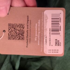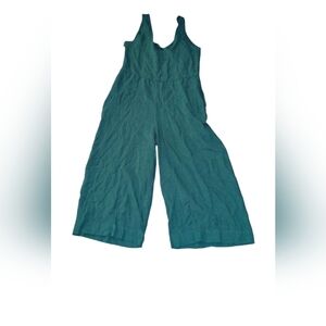 Patagonia brand. Conifer Green. One-piece. Two pockets. Side zip closure. Back v-neck. Sleeveless. Wide, crop legs. High-low waist. The first two pics are stock pics, which were included so you could see the fit. Size S - please see pics of measurements taken. Lightweight material: 55% hemp, 45% tencel. BRAND NEW with TAG ATTACHED