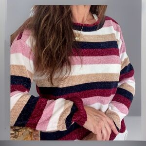 Womens Striped Sweater size S Cozy Knit Multicolor Soft Long Sleeve Fall Top