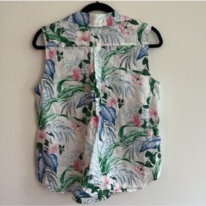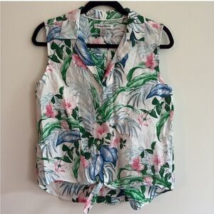 Keywords: Tommy Bahama, sleeveless top, tie front, floral print, Hawaiian print, palm print, summer top, vacation top, resort wear, button down, womens top, small, S